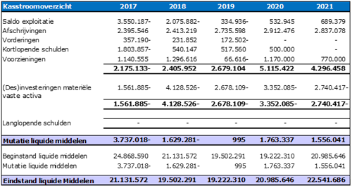 In het kasstroomoverzicht wordt de mutatie in de liquiditeit weergegeven. Het meerjarenperspectief is ten opzichte van vorig jaar sterk verbetert, mede doordat de investeringen (inclusief groot onderhoud) zijn verlaagd.